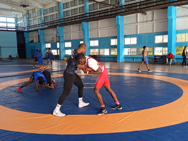 Luchadores del estilo Grecorromano entrenan en la Escuela Superior de Formación de Atletas de Alto Rendimiento “Cerro Pelado”.