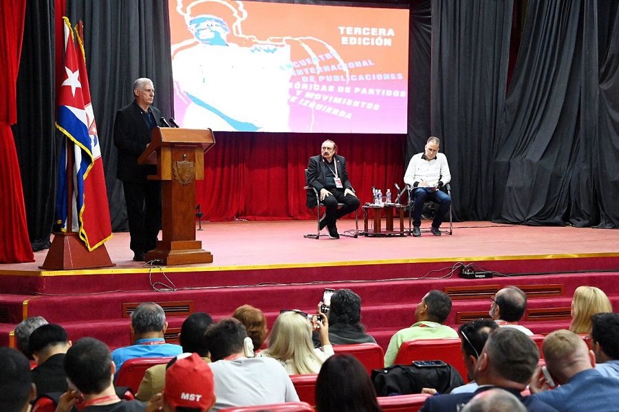 Recordó Díaz-Canel los fundamentos que dieron lugar a la creación de este tipo de encuentros en La Habana: los de articular los esfuerzos de la izquierda mundial frente a la hegemonía imperial.