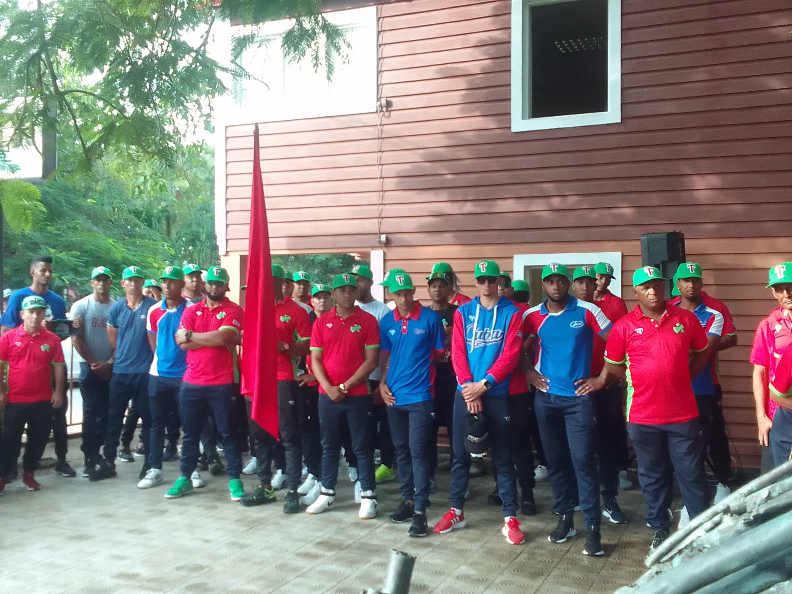 El Miembro del Comité Central y Primer Secretario del Partido Comunista de Cuba en Las Tunas Manuel René Pérez Gallego, escoltado del Gobernador, el Diputado Jaime Ernesto Chian Vega y el Director de Deportes Esnaido Estanque Jiménez colocaron la Bandera Roja y verde en manos del Capital Yunieski Larduet Domínguez y los jugadores Roberto Súliban Baldoquin y Rodolfo Días.