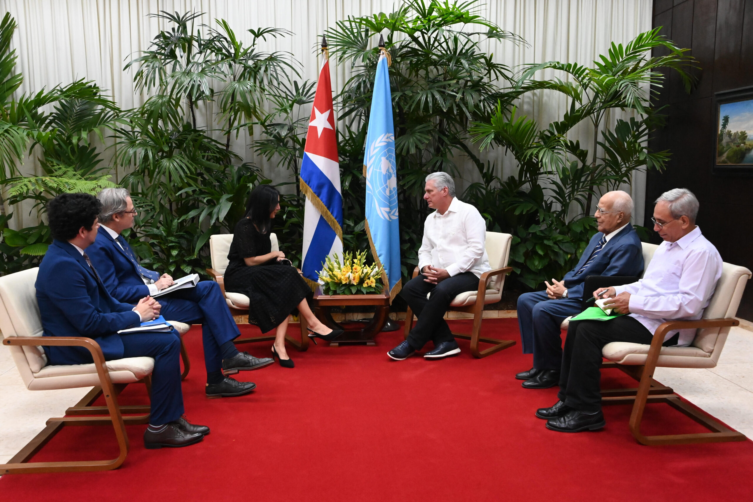 Durante un diálogo, sostenido en el Palacio de la Revolución, el Jefe de Estado cubano trasladó a Michelle Marie Mushett Zimmermann, subsecretaria general de la ONU y directora general para América Latina y el Caribe del PNUD, la satisfacción por el trabajo que realiza la agencia en la Isla.