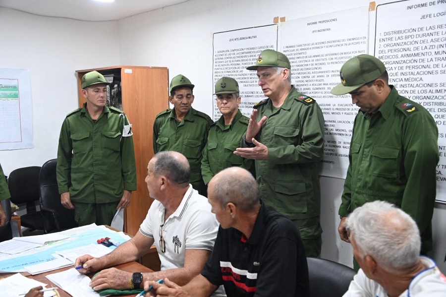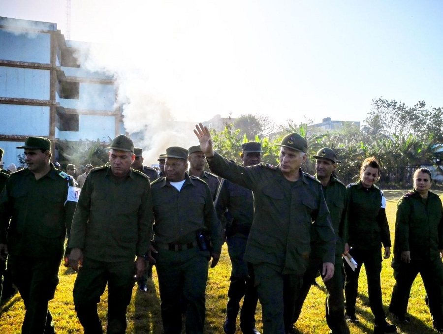 Acompañado por los miembros del Buró Político, Generales de Cuerpo de Ejército, Álvaro López Miera y Lázaro Alberto Álvarez Casas, Ministros de las Fuerzas Armadas Revolucionarias y del Interior, respectivamente, Díaz-Canel insistió en la importancia de estas jornadas, y recalcó la necesidad de perfeccionar los planes de aviso y la ubicación de la población para cumplir misiones durante la guerra, en un contexto de permanente amenaza de la actual administración de Estados Unidos.