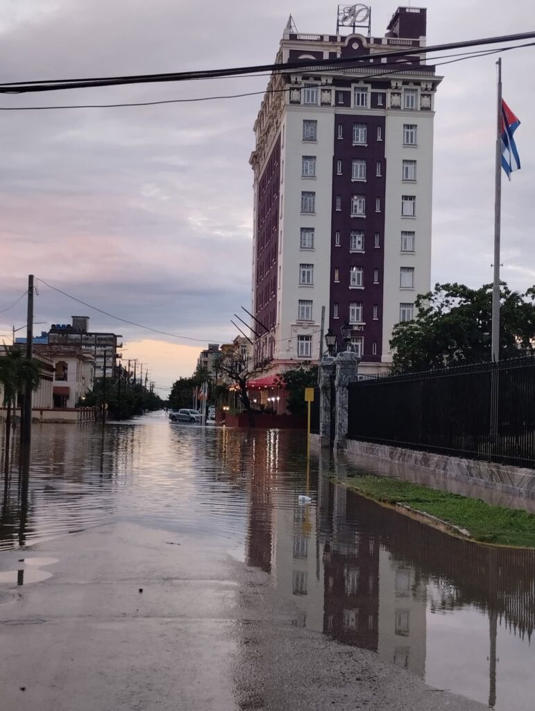 En el Consejo Popular Vedado Malecón, Roilan Rodríguez Barbán, primer secretario del Comité Municipal del Partido, y Liliana Malena Diaz Campa presidenta de la Asamblea Municipal del Poder Popular, junto a otras autoridades del Consejo de Defensa Municipal, revisaron los niveles de agua alcanzados.