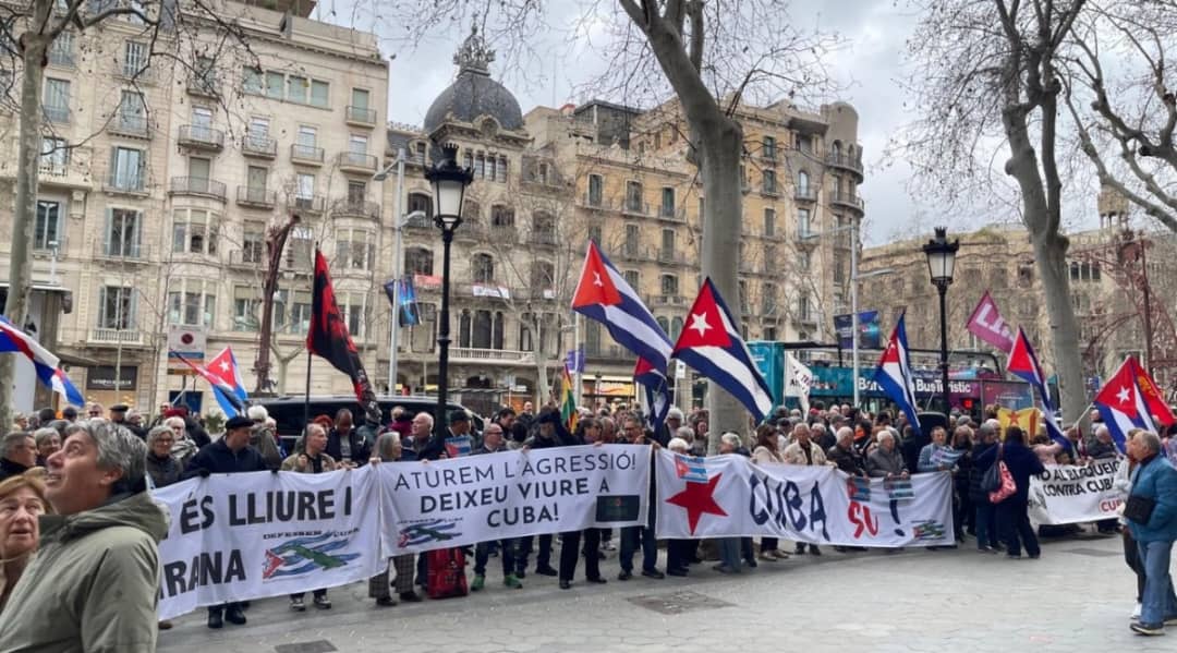 La movilización, organizada por la plataforma Defensem Cuba, logró reunir a amigos de la solidaridad y a cubanos dignos residentes en Cataluña, agrupados en la Asociación de Cubanos en Cataluña (ACRC) “José Martí”. Durante la jornada, se denunció el carácter terrorista de las agresiones contra la nación caribeña y se enviaron mensajes de resistencia frente a las amenazas de figuras políticas como Donald Trump.