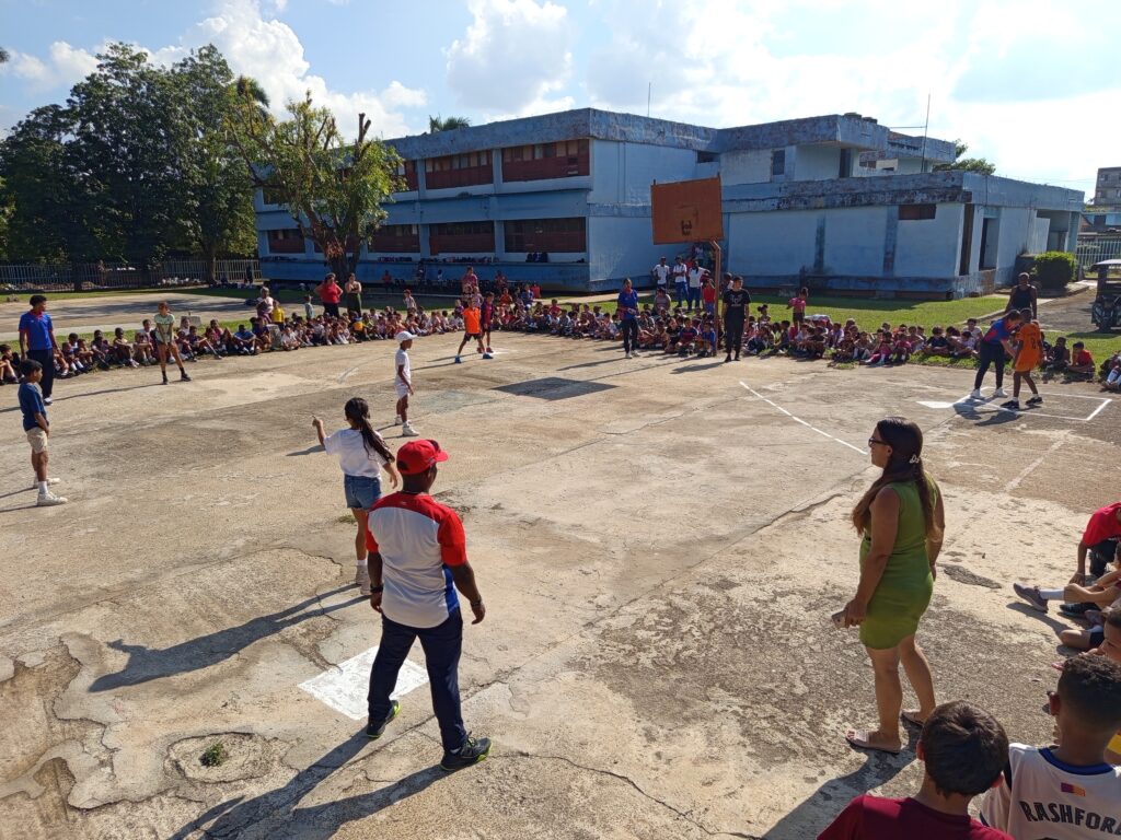 Eros Bernal, jefe técnico de esta modalidad que nació en los barrios cubanos, impartió una clínica para enseñar a jugar este deporte y además realizó una donación de pelotas para la práctica del mismo en la escuela.