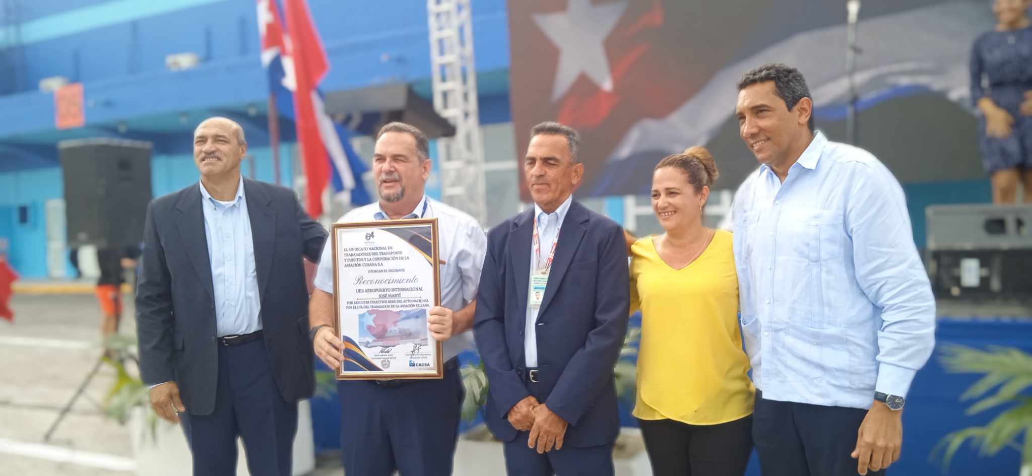 La Unidad Empresarial de Base Aeropuerto Internacional José Martí, recibió el reconocimiento por sede del acto nacional por el 64 aniversario del Día del Trabajador de la Aviación Civil.