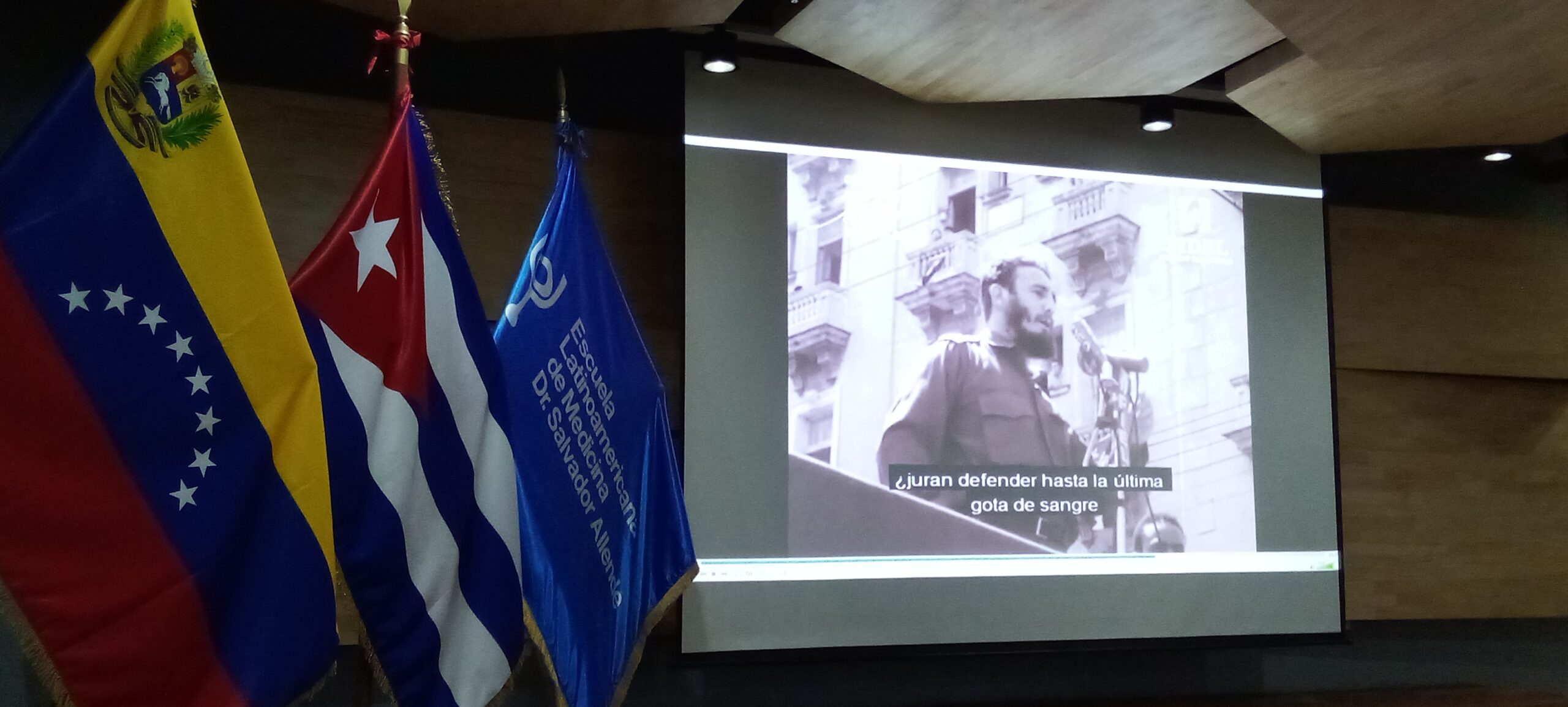El aniversario 63 de la victoria de Playa Girón se celebró en Venezuela con un acto político-cultural “Cantata de la victoria” que tuvo como sede la Escuela Latinoamericana de Medicina “Doctor Salvador Allende” en el centro de Caracas.