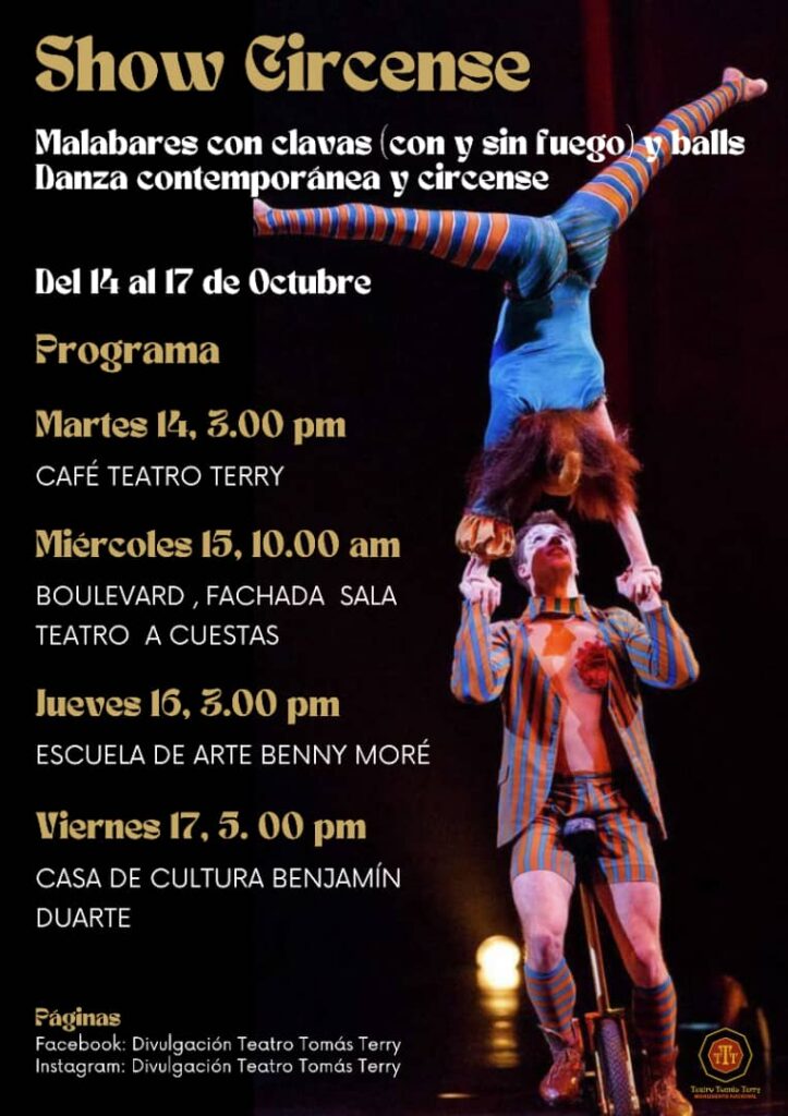 El acto, que abarca malabares danza contemporánea y circense, se presentó anteriormente en el Coliseo Mayor de la Perla del Sur, y este miércoles estará en el Boulevard en la fachada de la Sala Teatro a Cuestas, al tiempo que el jueves se trasladarán a la Escuela de Arte Benny Moré y el viernes a la Casa de Cultura Benjamín Duarte.