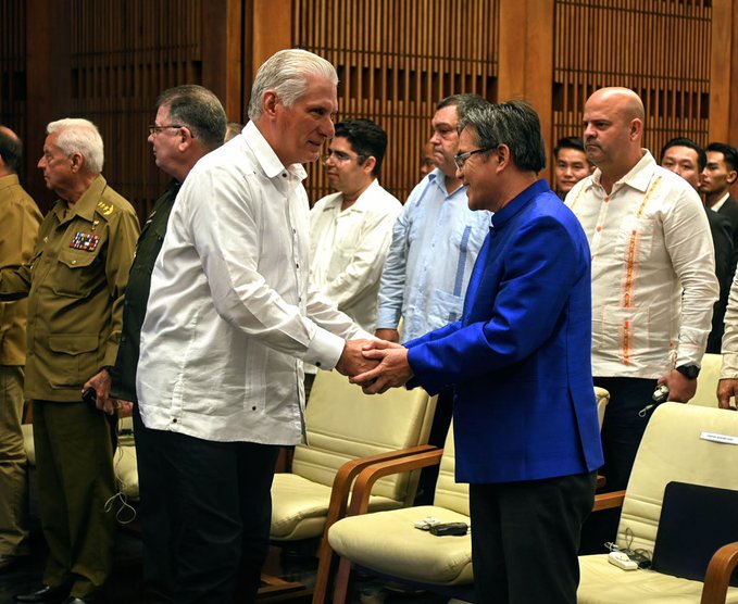 Rodríguez Parrilla a nombre del pueblo cubano, que crece ante las adversidades imperialistas, envió un saludo cálido a los hermanos laosianos.