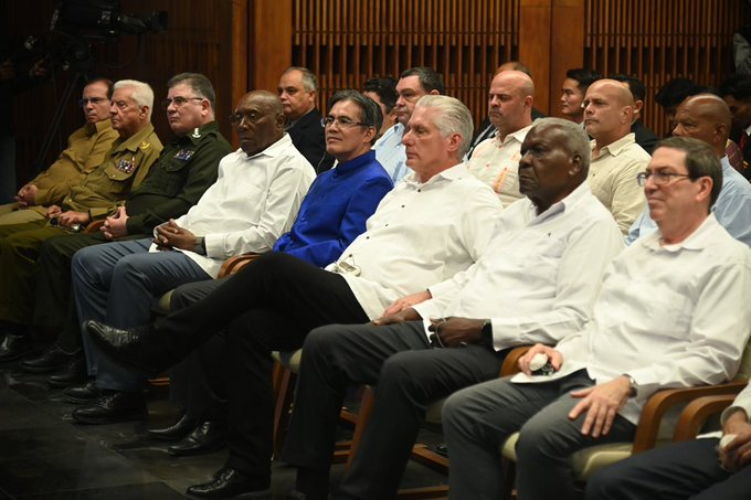 El canciller cubano, Bruno Rodríguez Parrilla, en el acto relató páginas históricas entre Cuba y Laos, que dan cuenta de una relación entrañable a pesar de la distancia geográfica. Mencionó símbolos de esos lazos como Melba Hernández, la brigada médica cubana y a la bailarina cubana Viengsay Valdés.