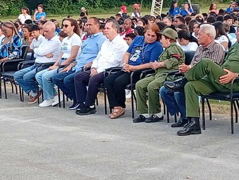 Presidieron la conmemoración José Ramón Monteagudo Ruiz, integrante del Secretariado del Comité Central; Livan Izquierdo Alonso, primer secretario del Comité Provincial del Partido en La Habana; Meyvis Estevez Echeverría, primera secretaria del Comité Nacional de la Unión de Jóvenes Comunistas (UJC); Yanet Hernández Pérez, Gobernadora de la ciudad; y la Heroína de la República de Cuba General de Brigada de la Reserva Delsa Esther Puebla Viltres, vicepresidenta de la Asociación de Combatientes de la Revolución Cubana.