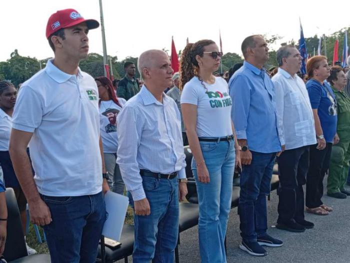 Presidieron la conmemoración José Ramón Monteagudo Ruiz, integrante del Secretariado del Comité Central; Livan Izquierdo Alonso, primer secretario del Comité Provincial del Partido en La Habana; Meyvis Estevez Echeverría, primera secretaria del Comité Nacional de la Unión de Jóvenes Comunistas (UJC); Yanet Hernández Pérez, Gobernadora de la ciudad; y la Heroína de la República de Cuba General de Brigada de la Reserva Delsa Esther Puebla Viltres, vicepresidenta de la Asociación de Combatientes de la Revolución Cubana.