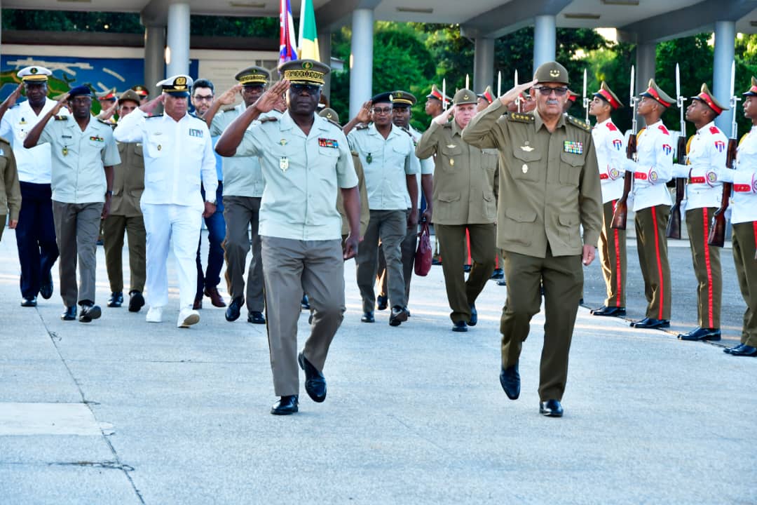 En la mañana de hoy, el miembro del Comité Central del Partido Comunista de Cuba, general de cuerpo de ejército Roberto Legrá Sotolongo, viceministro primero de las Fuerzas Armadas Revolucionarias y jefe del Estado Mayor General, recibió oficialmente en el mausoleo de El Cacahual al general de división Guy Blanchard Okoi, jefe del Estado Mayor General de las Fuerzas Armadas de la República del Congo.