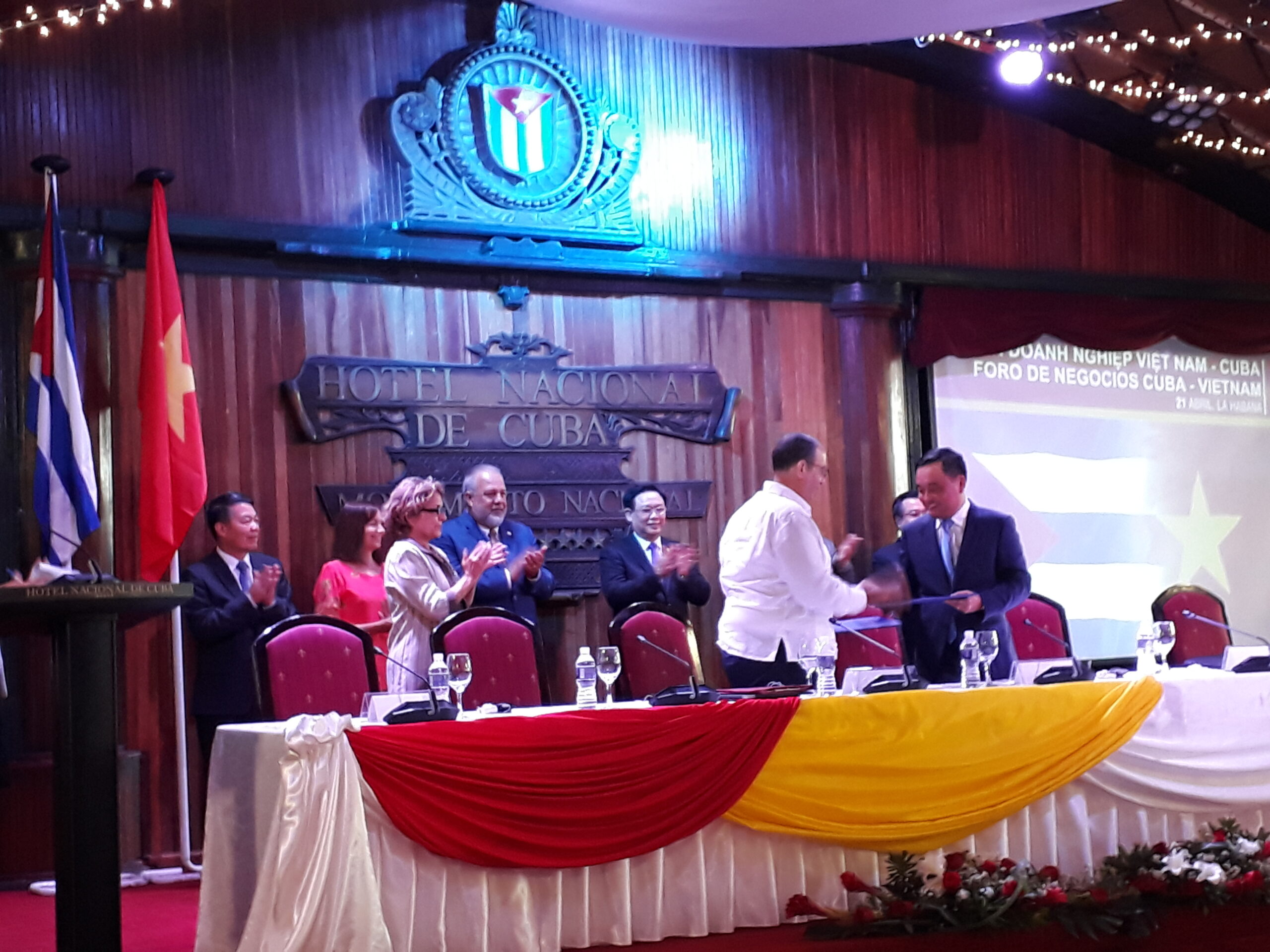 En el marco del foro se suscribieron cuatro acuerdos empresariales en el sector eléctrico, petrolero, la aviación y la construcción. Refrendaron las empresas Dinvai Construcciones S.A, la Unión Cuba-Petróleo, la Unión Eléctrica y Cubana de aviación y sus contrapartes vietnamitas.