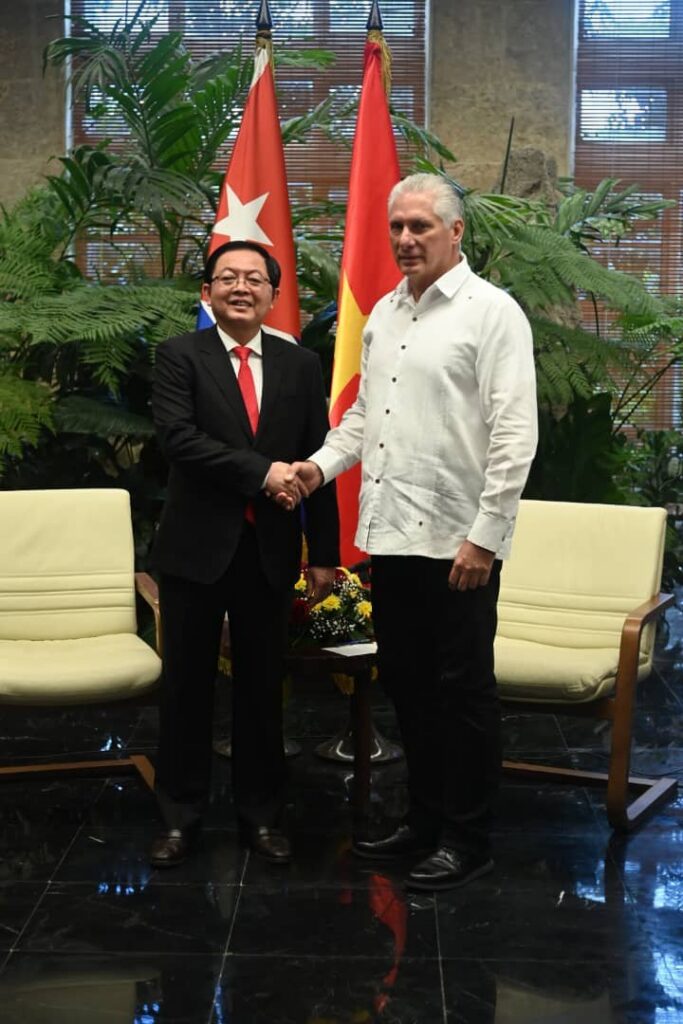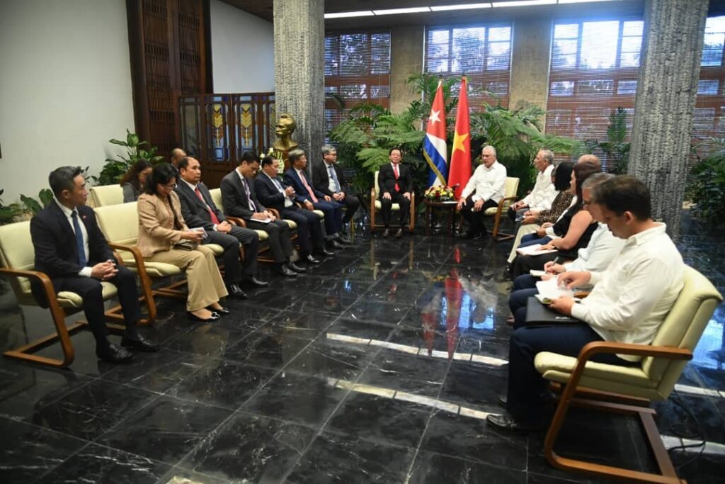 El Primer Secretario del Comité Central del Partido y Presidente de la República, Miguel Díaz-Canel, recibió este martes en el Palacio de la Revolución al Viceprimer Ministro de Vietnam, Ho Quoc Dung, en una visita calificada por ambas partes como altamente significativa para profundizar los históricos lazos de amistad, solidaridad y cooperación que unen a ambos países socialistas de manera formal hace exactamente 65 años, este dos de diciembre