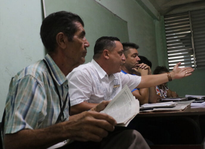 Acompañados por la integrante del secretariado nacional del Sindicato de los Trabajadores del Comercio, la Gastronomía y los Servicios (SNTCGS,) Lourdes Soria Vegue, Jorge Gutie Sánchez, secretario general del Buró Sindical Extraterritorial de los Nuevos Actores Económicos en La Habana, Amed Pérez López, administrador del Área de Comercialización del Puente de 100 y Boyeros, y Yulisney Rivera Romero, miembro del Secretariado Municipal de la Central de Trabajadores de Cuba (CTC) de Boyeros, el tema del contrato de trabajo entre empleados y empleadores centro parte de las intervenciones durante la reunión de análisis del Anteproyecto de Ley del Código de Trabajo por los cuentapropistas.