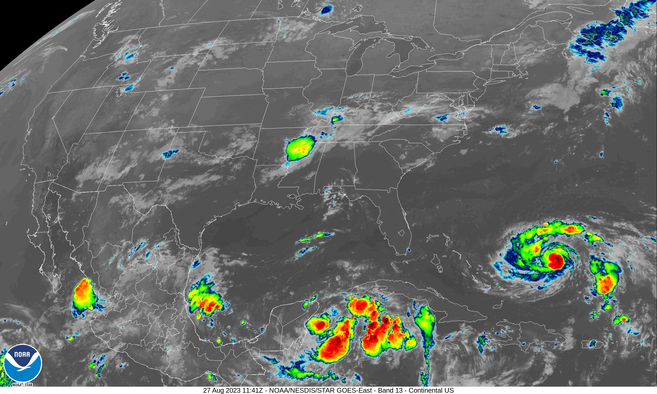 Los chubascos y tormentas eléctricas, asociados a este sistema, se extienden sobre el noroeste del mar Caribe, el canal de Yucatán y el occidente de Cuba.