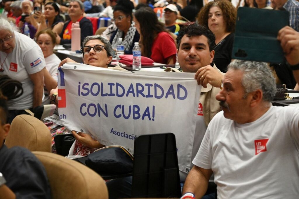 Desde Italia, Michelle Curto, presidente de la Agencia para el Intercambio Económico y Cultural con Cuba (Aiec), subrayó la importancia del internacionalismo y la necesidad de que Europa asuma una postura firme. Por su parte, Ada Galano, presidenta de la Coordinadora Nacional de Cubanos Residentes en Italia, representó a la emigración cubana con una intervención cargada de emoción: “Los cubanos residentes en el exterior no estamos ahí por los obligados. Estamos aquí cumpliendo la parte de deber que nos corresponde”.