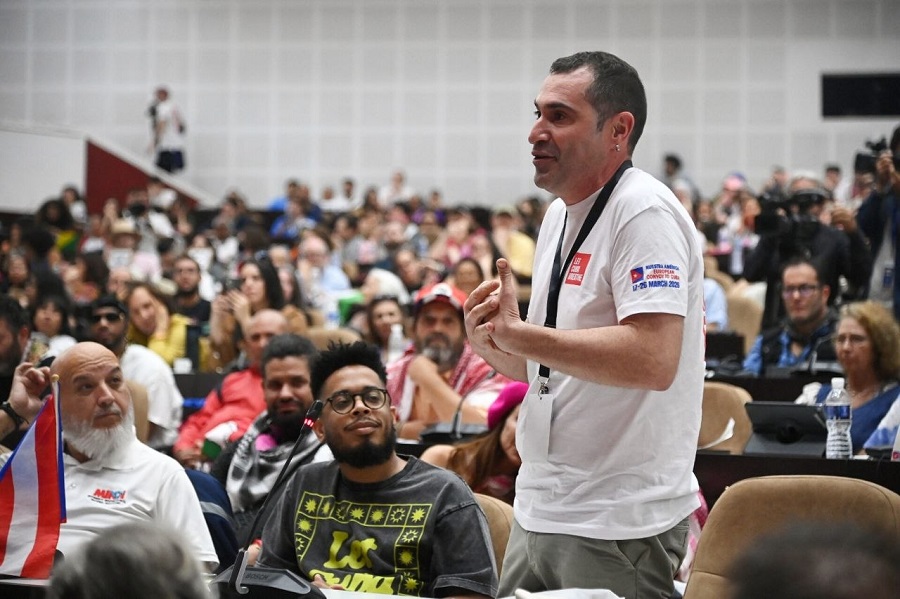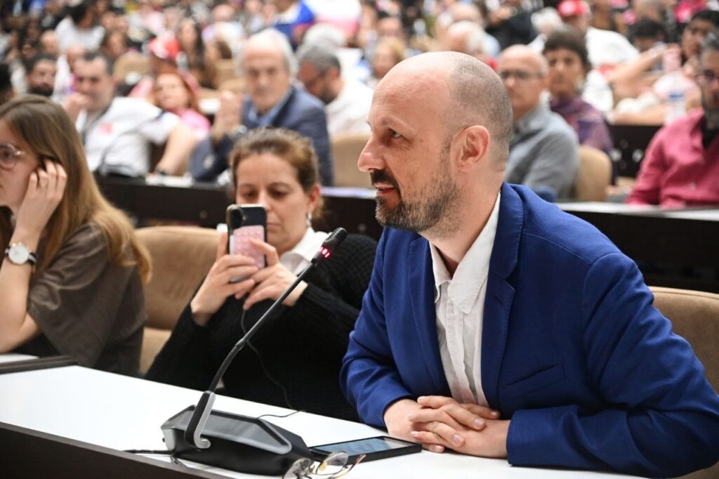Gerardo Pisarello, de la organización Sumar y secretario de la Mesa del Congreso de los Diputados de España, realizó una intervención de fuerte calado político. “No solamente vamos a continuar hasta el último aliento enviando toda nuestra ayuda, alimentos, medicina, placas solares a Cuba, sino que también si Cuba es agredida vamos a luchar y no vamos a permitir que nos pongan en la sombra a dormir como traidores”, sentenció. “No renunciamos a la revolución y no renunciamos al sueño de un mundo mejor”, concluyó.