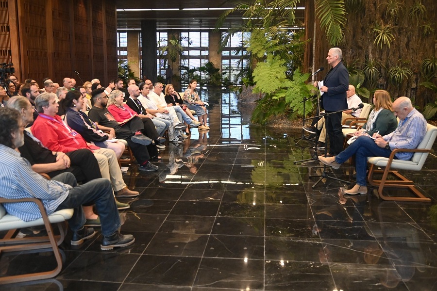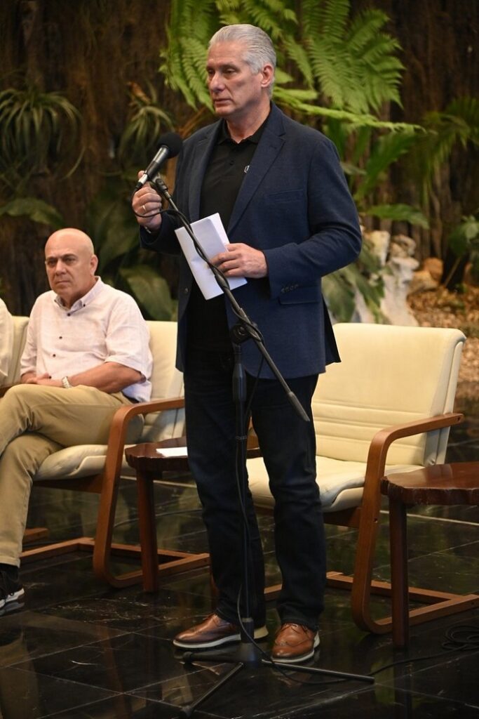 Díaz-Canel se refirió a la situación internacional, a las amenazas del gobierno de Estados Unidos, a las agresiones económicas que sufre Cuba, y al enfrentamiento a una brutal guerra ideológica, cultural y mediática.