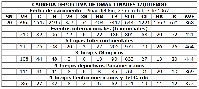 Bautizado como El niño Linares, llegó a convertirse en uno de los más grandes jugadores de béisbol cubano y mundial, Omar Linares Izquierdo es dueño de todas las marcas históricas en nuestras series nacionales, doble campeón olímpico, campeón mundial, Centroamericano y Panamericano.