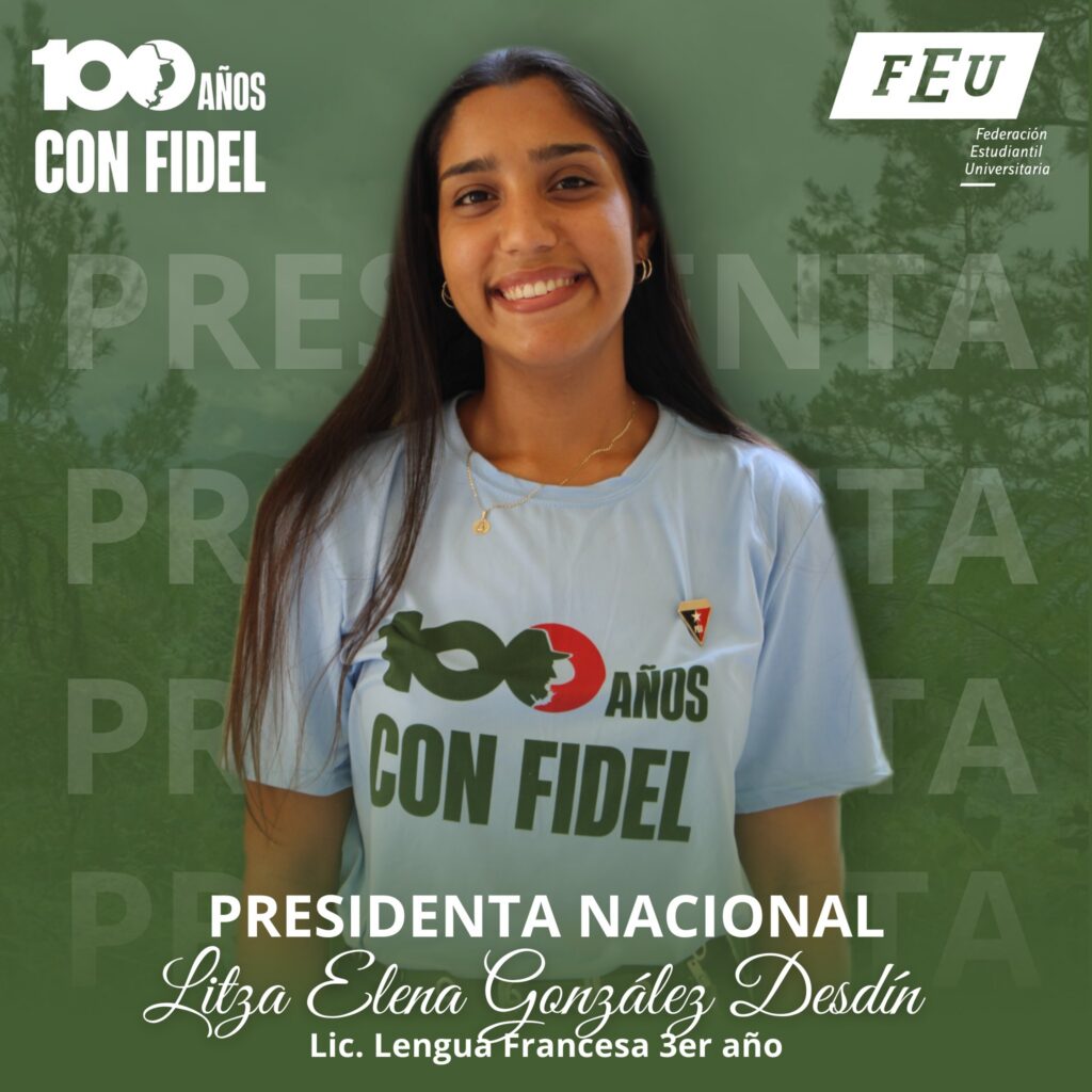 El Consejo Nacional de la FEU eligió como nueva presidenta de la organización estudiantil a Litza Elena González Desdín, quien se desempeñaba como vicepresidenta nacional y cursa el tercer año en la carrera de Licenciatura en Lenguas Extranjeras. A ella le fue reconocida su trayectoria como dirigente de la FEEM en la provincia de Holguín, y su tránsito destacado por las filas de la FEU.