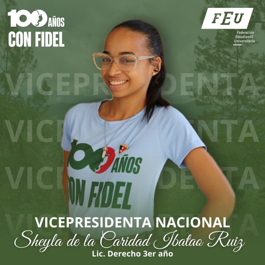 Asimismo, resultaron electos como Vicepresidenta: Sheyla de la Caridad Ibatao Ruiz, 𝗢𝗿𝗴𝗮𝗻𝗶𝘇𝗮𝗱𝗼𝗿 𝗡𝗮𝗰𝗶𝗼𝗻𝗮𝗹: Luis Angel Rivera Castellano; 𝗜𝗱𝗲𝗼𝗹𝗼́𝗴𝗶𝗰𝗮 𝗡𝗮𝗰𝗶𝗼𝗻𝗮𝗹: Thalía Beatriz Morell García; 𝗦𝗲𝗰𝗿𝗲𝘁𝗮𝗿𝗶𝗮 Nacional 𝗱𝗲 𝗗𝗼𝗰𝗲𝗻𝗰𝗶𝗮 𝗲 𝗜𝗻𝘃𝗲𝘀𝘁𝗶𝗴𝗮𝗰𝗶𝗼́𝗻: Nabia Isabel Vega Torres; 𝗦𝗲𝗰𝗿𝗲𝘁𝗮𝗿𝗶𝗮 𝗡𝗮𝗰𝗶𝗼𝗻𝗮𝗹 𝗱𝗲 Proyección 𝗦𝗼𝗰𝗶𝗮𝗹: Maureen Claudia Cuevas; 𝗦𝗲𝗰𝗿𝗲𝘁𝗮𝗿𝗶𝗼 𝗡𝗮𝗰𝗶𝗼𝗻𝗮𝗹 𝗱𝗲 𝗗𝗲𝗽𝗼𝗿𝘁𝗲 𝘆 𝗥𝗲𝗰𝗿𝗲𝗮𝗰𝗶𝗼́𝗻: Reynaldo Ruiz Galano; 𝗦𝗲𝗰𝗿𝗲𝘁𝗮𝗿𝗶𝗼 𝗡𝗮𝗰𝗶𝗼𝗻𝗮𝗹 𝗱𝗲 𝗖𝘂𝗹𝘁𝘂𝗿𝗮: Anthony Gil Williams; 𝗦𝗲𝗰𝗿𝗲𝘁𝗮𝗿𝗶𝗮 𝗡𝗮𝗰𝗶𝗼𝗻𝗮𝗹 𝗱𝗲 Comunicación: Yanay Barrueta Fleites; 𝗦𝗲𝗰𝗿𝗲𝘁𝗮𝗿𝗶𝗼 𝗡𝗮𝗰𝗶𝗼𝗻𝗮𝗹 𝗱𝗲 𝗔𝘁𝗲𝗻𝗰𝗶𝗼́𝗻 𝗮 Líderes, 𝗘𝗹𝗲𝗰𝗰𝗶𝗼𝗻𝗲𝘀 𝘆 𝗣𝗮𝗿𝘁𝗶𝗰𝗶𝗽𝗮𝗰𝗶𝗼́𝗻: Ernesto Alejandro Gómez Pérez, Estudiante de Medicina, 6to año; 𝗦𝗲𝗰𝗿𝗲𝘁𝗮𝗿𝗶𝗼 𝗡𝗮𝗰𝗶𝗼𝗻𝗮𝗹 𝗱𝗲 𝗥𝗲𝗹𝗮𝗰𝗶𝗼𝗻𝗲𝘀 𝗜𝗻𝘁𝗲𝗿𝗻𝗮𝗰𝗶𝗼𝗻𝗮𝗹𝗲𝘀 𝘆 𝗣𝗿𝗲𝘀𝗶𝗱𝗲𝗻𝘁𝗲 𝗱𝗲 𝗹𝗮 𝗢𝗖𝗟𝗔𝗘: José Alejandro Alonso Cáceres; 𝗖𝗼𝗼𝗿𝗱𝗶𝗻𝗮𝗱𝗼𝗿𝗮 𝗱𝗲𝗹 𝗠𝗜𝗡𝗦𝗔𝗣: Aliyen Cachimaille Ortiz; 𝗖𝗼𝗼𝗿𝗱𝗶𝗻𝗮𝗱𝗼𝗿 𝗱𝗲𝗹 𝗠𝗘𝗦: Luis Ernesto González Guerra.