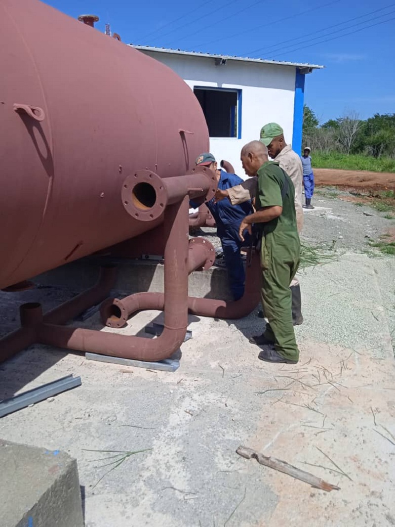 “La Empresa trabaja en el cambio de matriz en 69 bombas, con paneles solares, apunta, hoy están puestas en marcha 51. Se acomete la tarea por los compañeros de la Brigada Provincial de Acueductos junto con otras entidades que certifican la obra como tal”.