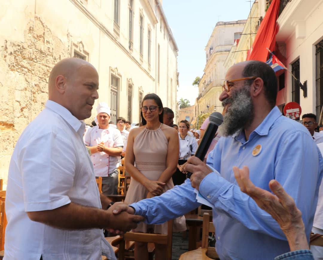 Ángel Aguilera Castillo Coordinador del proyecto de Desarrollo Local La Moneda Cubana recibió el reconocimiento de manos del Héroe de la República de Cuba y Coordinador Nacional de los CDR Gerardo Hernández Nordelo.