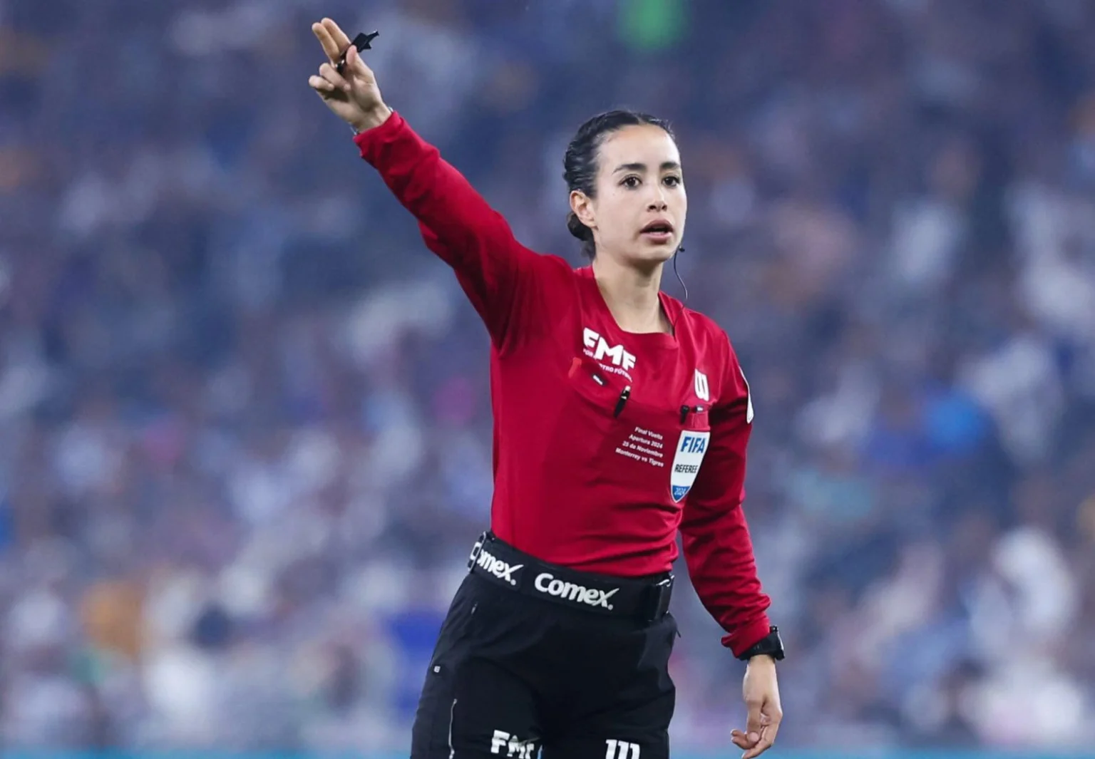 Her career includes officiating a Liga MX men’s First Division match in 2024, Pachuca vs. Querétaro, when she broke a period of more than 20 years without women refereeing in Mexico.