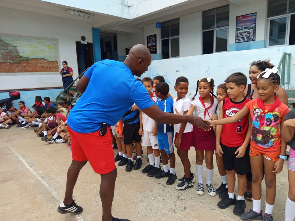El atleta capitalino compartió su historia de vida con los estudiantes de este centro de la enseñanza primaria. Los niños no solo aprendieron de técnicas para controlar la esférica, el querido atleta les transmitió valiosas lecciones sobre la importancia de la disciplina, la concentración y el esfuerzo cotidiano para materializar las aspiraciones.