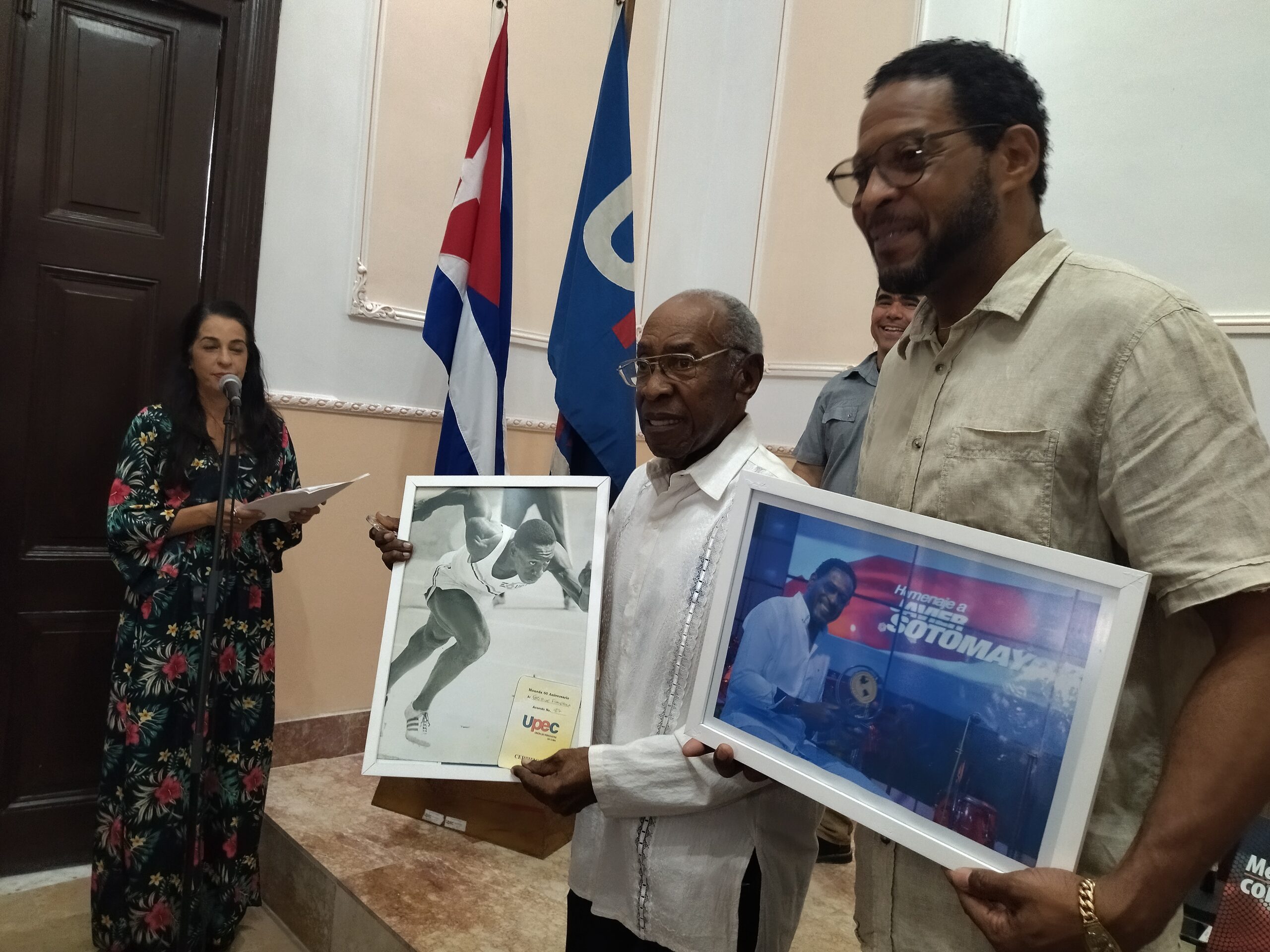 Las emociones comenzaron cuando el Presidente de la organización, Ricardo Ronquillo Bello, le entregó la Moneda 60 Aniversario de la UPEC a dos leyendas del Atletismo, Enrique Figuerola, primer medallista olímpico después del Triunfo de la Revolución y Javier Sotomayor, recordista mundial en salto de altura.