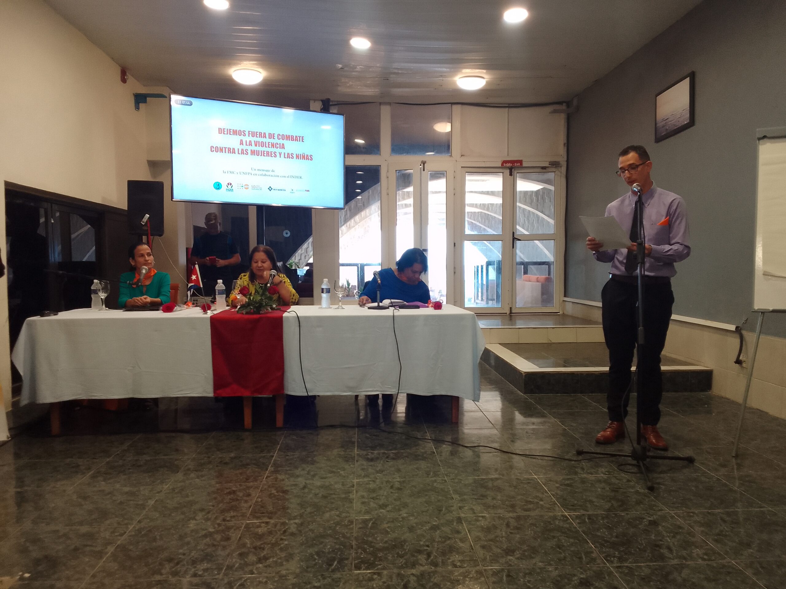 Junto a @TeresaBoue participamos en encuentro donde se realiza el II Taller de evaluación de la "Estrategía Integral de prevención y atención a la violencia de género y en el escenario familiar". Se actualizan las brechas, desde las diferentes opiniones. #MujeresEnRevolución 🇨🇺 pic.twitter.com/VhdxFCjtuT