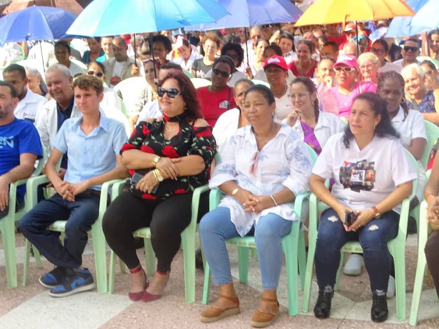 La integrante del Comité Central del Partido y su primera secretaria en Villa Clara, Susely Morfa González y la Gobernadora, Milaxy Yanet Sánchez Armas, presidieron la sentida conmemoración, para enaltecer aquel encuentro del gigante con la ciudad del Che. Este pueblo, capaz de movilizarse en pocas horas sin importar la fuerte lluvia, puso a prueba otra vez su fidelidad con la Revolución y su eterno Comandante.