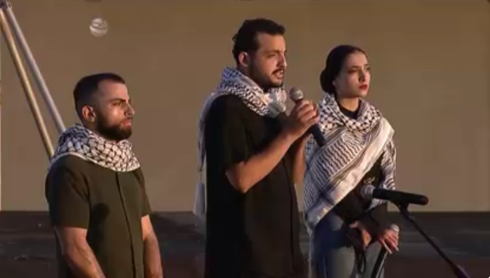 Un trío de estudiantes palestinos expresó, mediante cantos y poesía, su indignación por la muerte de más de 67 mil personas y más de 200 mil heridos desde que el ejército israelí intensificara su agresión en respuesta desproporcionada a la incursión de fuerzas de Hamás en territorio israelí el 7 de octubre de 2023.
