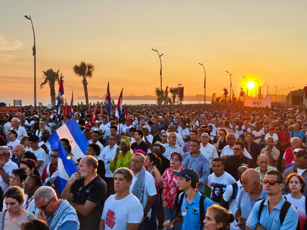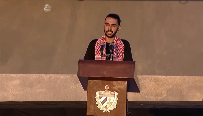 El segundo secretario de la Unión de Jóvenes Comunistas, Yaliel Cobo, denunció la “complicidad histórica de Estados Unidos, supuesto paladín de la democracia, que hoy no siente el más mínimo remordimiento por el genocidio en Gaza, donde han muerto más de 67 mil palestinos, en su mayoría mujeres y niños”.