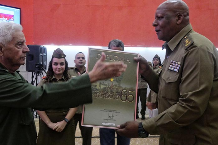 Con la firma del General de Cuerpo de Ejército Álvaro López Miera, ministro de las Fuerzas Armadas Revolucionarias (FAR), llegó al Estado Mayor del otrora Ejército del Centro un diploma de reconocimiento al mando por la labor desplegada en función de la preparación para la defensa durante 65 años.