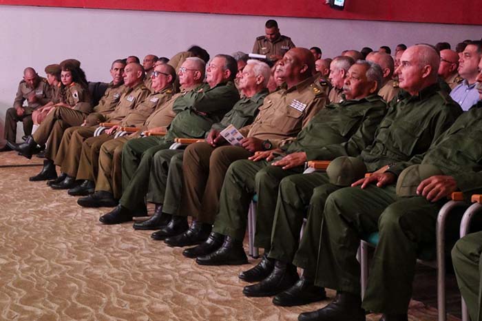 Presidieron el homenaje el general de Cuerpo de Ejército Joaquín Quintas Solá, viceministro de las FAR; el general de División Victor Leonardo Rojo Ramos, jefe de la Dirección Política de las FAR, y el general de División Raúl Villar Kessell, jefe del Ejército Central.
