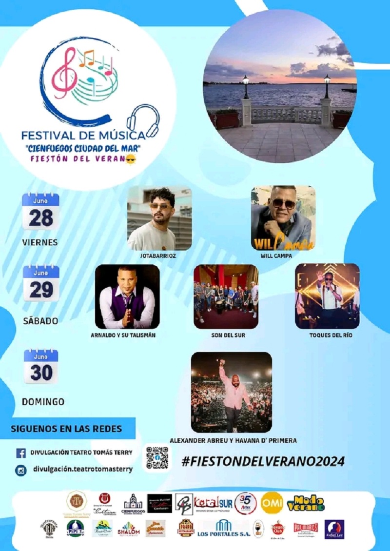 Cienfuegos, Cuba– El Festival de Música Cienfuegos Ciudad del Mar iniciará el verano este viernes 28 de junio con espacios y géneros para alegría y felicidad del pueblo, que cerrará la primera noche acogiendo a Wil Campa en el Recinto Ferial de la Plaza de Actos.