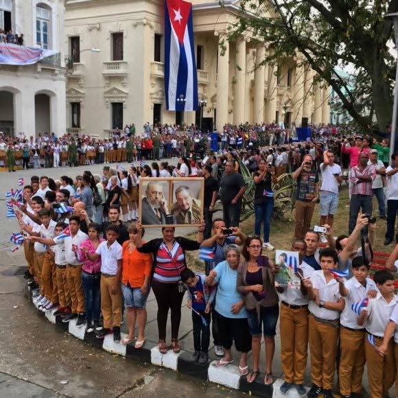 Lentamente entra la urna de cristal al centro de la isla. Abrazado por la bandera cubana, ya llega Fidel de cuerpo y alma.