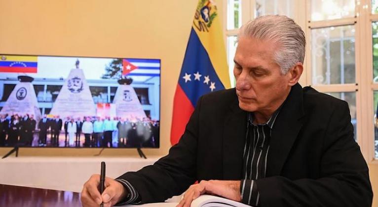 Firma Díaz-Canel libro de condolencias en Embajada de Venezuela en Cuba