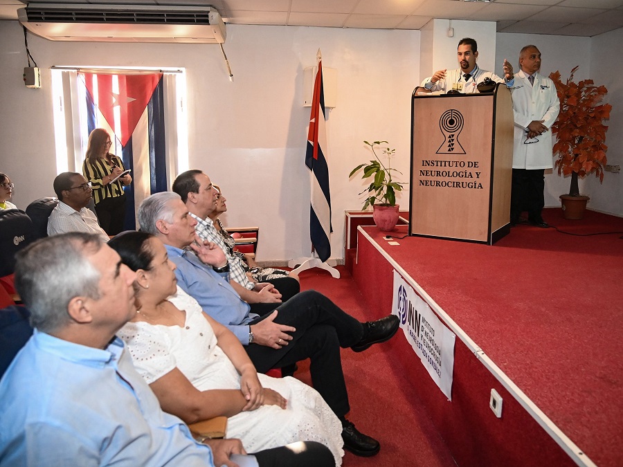 Tanto en la presentación realizada durante el intercambio que se produjo entre el mandatario y los especialistas, como en las declaraciones ofrecidas al equipo de prensa, el Dr. Orestes López Piloto, director del Instituto de Neurología y Neurocirugía, se refirió a los desafíos cotidianos de todos los especialistas y trabajadores del centro médico, docente y científico, para lograr resultados de excelencia en el tratamiento a los pacientes.
