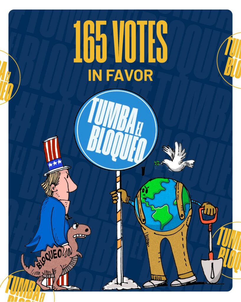 El gobierno de los Estados Unidos ha ignorado por más de treinta años las sistemáticas resoluciones aprobadas por la Asamblea General de las Naciones Unidas, así como las voces a lo interno de la sociedad civil estadounidense que abogan por poner fin a la ilegal y obsoleta política.
