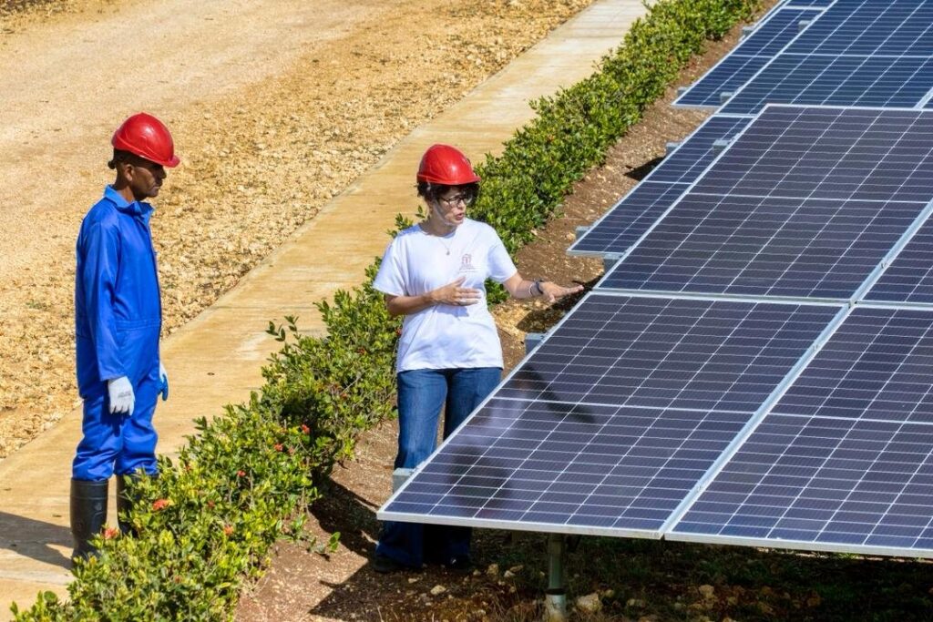 «Ahí estamos desarrollando dos líneas de trabajo», explica con entusiasmo. «Una donde hemos incorporado la automatización al riego fotovoltaico, y una segunda relacionada con una aplicación bastante novedosa llamada agrivoltaica». Ambos desarrollos se están implementando en el contexto del acelerador agrícola localizado en el Instituto de Farmacia y Alimentos de la propia Universidad de La Habana, un proyecto liderado por la Fundación.