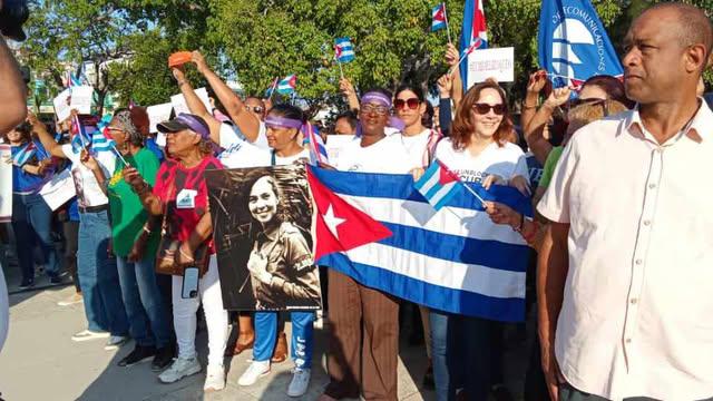 Un multitudinario acto en contra del bloqueo económico, comercial y financiero que el gobierno de Estados Unidos mantiene contra Cuba, tuvo lugar este martes 7 de abril en La Habana, convocado por la Federación de Mujeres Cubanas (FMC).