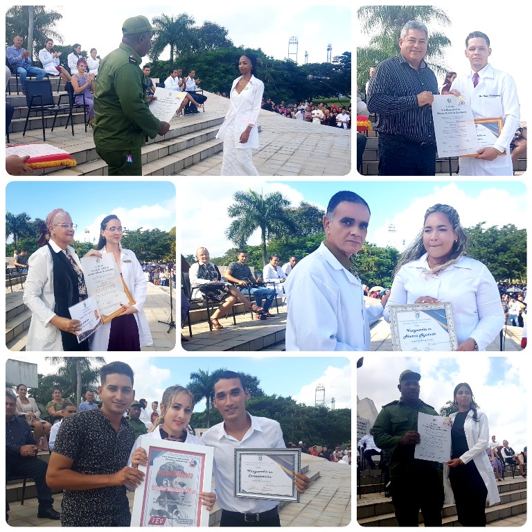 En el acto de graduación de la   Universidad de Ciencias Médicas, de Camagüey, el Presidente del Consejo de Defensa provincial, Walter Simón Noris, junto al vicegobernador Yennis León Mayedo, y dirigentes juveniles, entregaron diplomas y reconocimientos a los egresados vanguardias integrales y destacados, en las esferas de la docencia, las investigaciones, el deporte y la labor de las organizaciones estudiantiles.