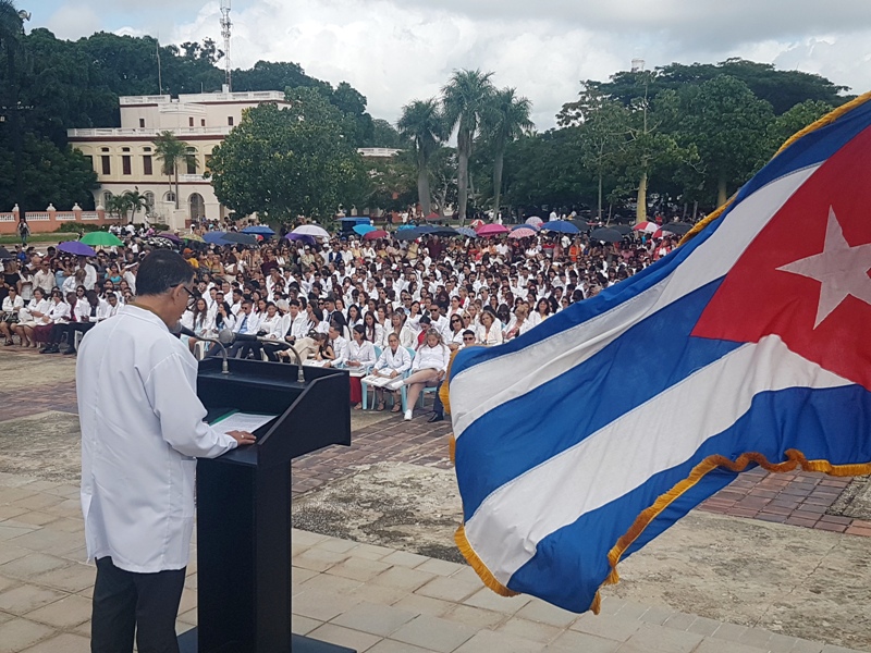“Comienza ahora el difícil camino de la entrega diaria, la responsabilidad ante el paciente, la defensa de la ética médica, el fortalecimiento de los valores como la solidaridad, el altruismo, el humanismo y el internacionalismo”.