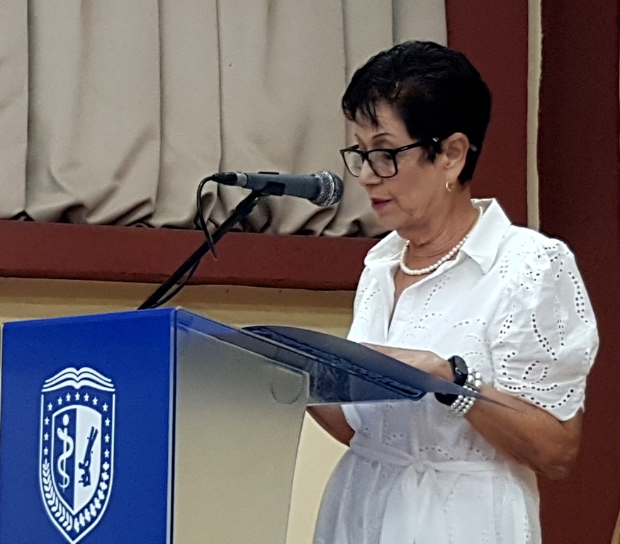 En esta oportunidad, la profesora de Anatomía, doctora Mayda Estrella Durán Matos, tuvo a su cargo la Oración, en la que resalta la vigencia del pensamiento y la acción del doctor Carlos J Finlay, descubridor del agente trasmisor de la fiebre amarilla.