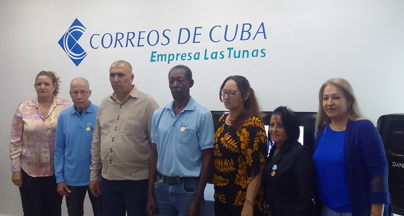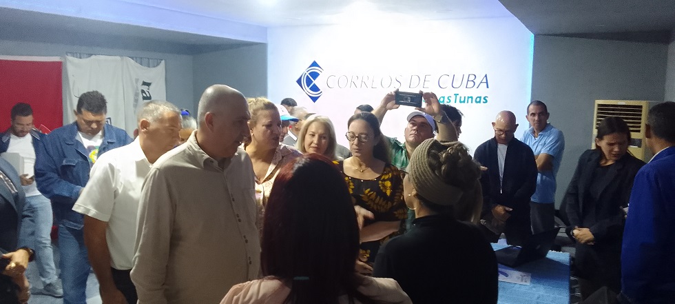 Junto al Primer Secretario del Partido Comunista de Cuba en la Provincia, Osbel Lorenzo Rodríguez, la Gobernadora, la Diputada Yelenis Tornet Menéndez y la Secretaria General de la Central de Trabajadores de Cuba en Las Tunas Odalis Batista Pérez, Erlin Rondón Cedeño entregó la Bandera de Proeza Laboral a los telecomunicadores por la contribución a la recuperación de las provincias orientales del Huracán Melissa.