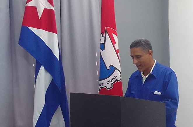 Al hablar en nombre de los trabajadores el ingeniero en telecomunicaciones Manuel Rojas ratificó a Raúl y Diaz-Canel su compromiso Patrio y juró dignidad por la gloria vivida.
