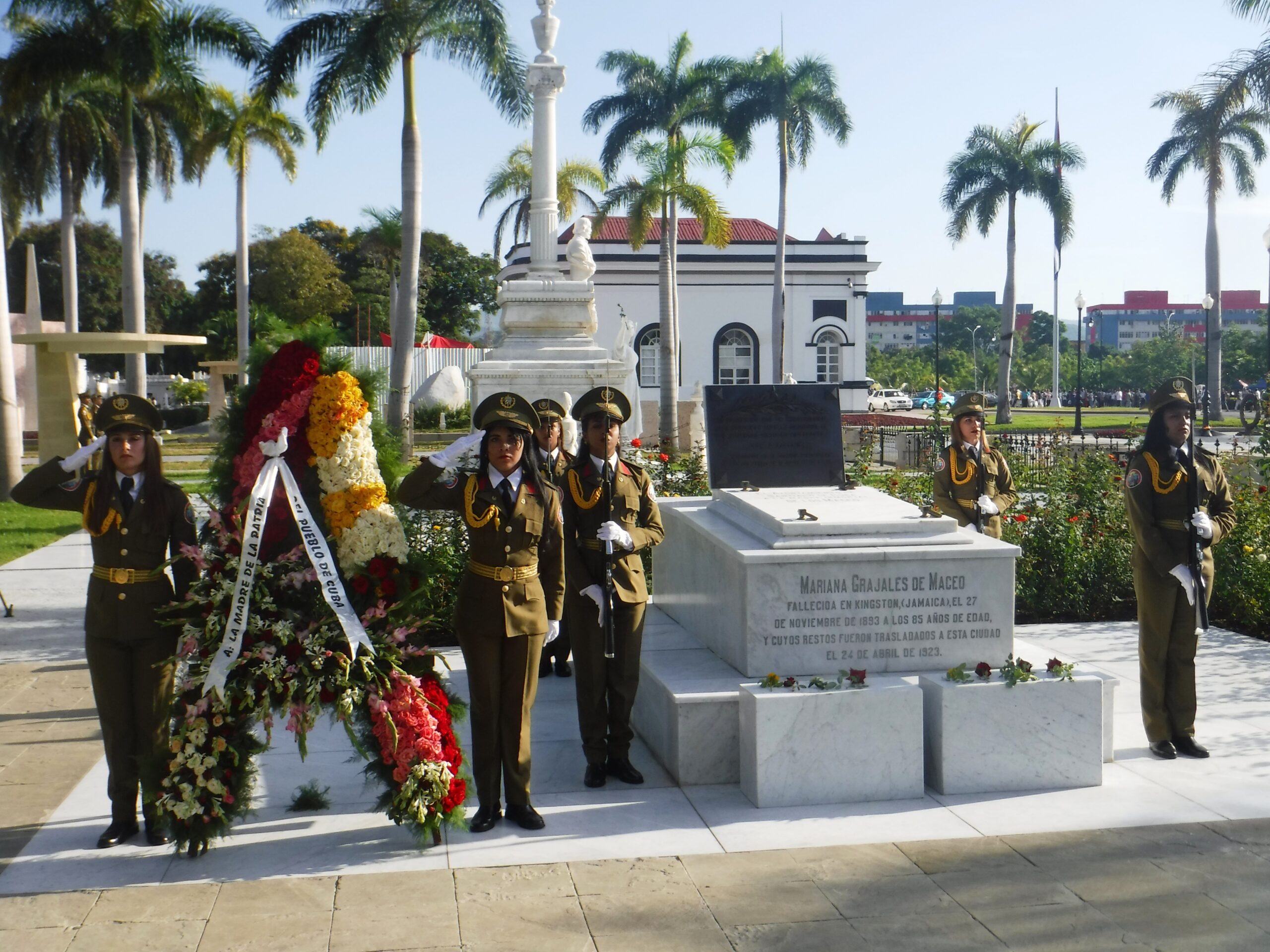 Una ofrenda floral a título del pueblo de Cuba fue colocada ante la tumba donde reposan sus restos en el cementerio patrimonial “Santa Ifigenia”, en simbólico reconocimiento a todas las cubanas que han perdido sus hijos en las luchas libertarias y en el cumplimiento de misiones internacionalistas.
